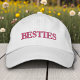 Besties Melhores Amigos Tipografia Moderna O Boné de Baseball Boriderado Personalizado apresenta o texto simples e bordado "Besties". Perfeito como presente para seu melhor amigo, primo, irmã, mãe e muito mais. Criado pelo Evco Studio www.zazzle.com/store/evcostudio