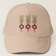 Uma ilustração vegetal vintage de uma beterraba é colorida em vermelhos e verdes.