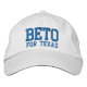 Beto para Boné de baseball bordado azul e branco do Texas. Disponível em muitas cores e opções. com texto totalmente personalizável. Verifique o resto da coleção para itens de coordenação correspondentes.