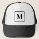 Keep your look casual and stylish with this personalized monogram trucker hat. Featuring a bold serif initial on a classic black and white design, it’s perfect for everyday wear or as a thoughtful custom gift.