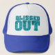 Nosso Blissed Out Trucker Hat apresenta um efeito azul falso de "bling" e uma ousada carta atlética. Projetado para almas espirituais que conhecem a alegria da vida de coração aberto. Mostrado em um boné real e branco — disponível em várias cores.