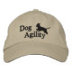 Este chapéu bordado tem uma silhueta preta saltando Chihuahua sobre a palavra Agilidade, com "Cachorro" à direita. Um chapéu de Chihuahua fantástico para qualquer um que experimente com o seu canino.