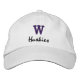 Boné mostrado em branco com texto bordado roxo/preto. Por todos os seus fãs Roucos!
