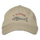 Chapéu de Pesca Personalizável - A palavra "pesca" forma o corpo de um peixe, depois uma cabeça e uma cauda foram acrescentadas nesta design única por Marilyn Straus. Todas as cores do thread podem ser alteradas para um esquema de cores de sua escolha. A palavra "pesca" e ser da mesma cor que a cabeça e a cauda ou pode ser diferente. As palavras "eu amo" também podem ser mudadas... ou completamente removidas. Além disso, você pode adicionar um nome e/ou a cidade natal aos lados do chapéu.