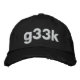 Um boné preto de Chino para geeks fluentes em Leettalk com a palavra g33k bordada em branco.