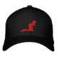 Logotipo bordado de mongooses vermelhas em um boné flexível.
