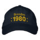 Nascer em 1980 ou qualquer ano MARINHO AZUL Hat DOURADO Embroiderme com STARS. Um chapéu de aniversário divertido que você pode personalizar com um sentimento, nome e ano. Todo o texto é totalmente personalizável, pelo que também é adequado para 31 32 33 34 35 36 37 38 e 39 anos de aniversário, ou para qualquer outro ano de que necessite. Você também pode mudar a cor do chapéu, o estilo do chapéu ou a cor do thread para uma aparência diferente. DESIGN TIP: Se estiver usando um nome muito longo, talvez seja necessário alterar o estilo do texto. Eu recomendo BLOCO ATLÉTICO se você precisar de um texto denso - você poderá apertar mais letras.