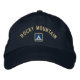 Sunshade com o Parque Nacional da Montanha Rochosa com símbolo de acampamento tricolorido, todos bordados profissionalmente. Parece excelente em um boné colorido de pedra, mas misture e combine e personalize. Esta versão está disponível em três estilos de chapéu.