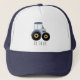 This cute and modern kids trucker hat design features a blue farm tractor cartoon and space for your to add your boys name. The perfect gift for any tractor-loving little farmer!