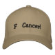 Chapéu com a frase "Cancer F" impressa na frente