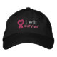 Cancer da mama Eu sobreviverei Bonés e chapéus bordados com fita de coração rosa para promover a consciência do Cancer da mama. Marque o marcador CancerApparelGifts.Com como sua loja para tudo o que é consciência do cancer: