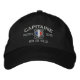 Um estilo náutico clássico de âncoras cruzadas com uma bandeira francesa, um boné personalizado bordado para um capitão francês de ocasiões especiais. Use o link "Perguntar a este Designer" para entrar em contato conosco com suas solicitações especiais de design ou para obter assistência com qualquer das suas necessidades de personalização.