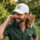 Are you a "CAT DAD" to a beautiful furry creature, e.g. carefully choosing the right cat food, giving cuddles when your beloved pet allows you, taking time to play with the favorite toy? This hat might be for you, or a loved one who parents a cat or two. This cap is also a great Father's Day gift. This hat features embroidered text "CAT DAD" in playful typography with alternating brown and orange, almost tiger colors.