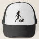 Celebrate your inner cat lady with this fun graphic hat designed for the modern cat mom. The comic inspired art features a sassy cat lady walking her grouchy tuxedo kitty on a leash. Perfect for messy hair days and judgmental cats. Meow | This design is available on multiple hat styles. Choose a trucker, dad, snapback, or bucket hat from the Product Style menu above.
