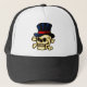 Uma imagem clássica de tatuagem vintage de um crânio vestindo um chapéu.