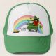 Chame-me de produto de Dia de São Patrício de Gnome irlandês. Gnomo barbudo engraçado, viajando em um caminhão, dirigindo-se em direção a um arco-íris, e shamrocks no ar. Personalizar este modelo