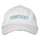 Chapéu mostrado em branco colorido com texto bordado azul: Kentucky Personalize este item ou comprar como está.