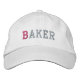 Baker soletrado em letras coloridas bordadas pastel em um chapéu branco de baseball / boné de beisebol. Um presente divertido para um padeiro profissional, ou uma pessoa que ama assar. Outras combinações de cores e estilos de chapéu disponíveis. Projetado por Chamado. Mais presentes no site https://www.zazzle.com/called*