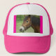 Um cavalo bonito neste chapéu cor-de-rosa e branco. Aperfeiçoe para amantes do cavalo. Foto original pelo mmersdesign.