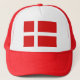 Este chapéu do camionista ostenta a bandeira de Dinamarca. Mantenha uma cabeça legal com um dom dinamarquês pequeno.