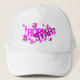 Estrela do rock no chapéu do camionista branco, chapéu Desc da malha. A palavra "ROCHA" no rosa sob a "ESTRELA" no chapéu de um camionista branco da malha. Chapéu da menina ou da cara. Splatter cor-de-rosa da pintura.