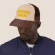 Diversão HANDY MAN e slogan irônico no chapéu de caminhoneiro, afirmação tipográfica amarela e engraçada, inspirada pelo personagem de comédia de tv frank rossitano.
