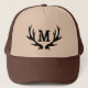 Chapéu de veado russo de caça a veados. Design castanho com monograma personalizado. Ideia de presente de aniversário masculina para homens loucos. Crie o seu para pai, pai, tio, marido, avô, irmão, filho, rapaz, etc. Gráficos temáticos de caçador. Olhar desbotado.