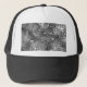 Chapéu de caminhoneiro com um legal design abstrato de "aparência de metal líquido", e formas giratórias e borbulhantes em tons de cinza prateada. Pode ser usado como um fundo para o seu próprio texto, imagens e ideias. Observe que esta é uma imagem de arte digital impressa, ela não brilha ou contém metal real.