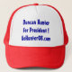 Texto azul no fundo branco, chapéu vermelho. Promove um Web site 2008 do candidato presidencial Duncan Hunter.