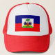 o camionista vermelho com bandeira de haiti, apoia este para caídas deste país cedo caras vítimas deste year.the do terremoto mortal