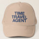 CRONOMETRE o slogan do divertimento do AGENTE DE VIAGENS no chapéu do camionista, azul, tipografia corajosa, indicação do divertimento, inspirada pelo rossitano da franquia do caráter da tevê. melhor para proprietários de veículo do espaço.