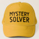 O slogan no chapéu do camionista, preto do divertimento do AGENTE DE RESOLUÇÃO do MISTÉRIO, indicação tipográfica, corajosa, presente irónico do divertimento inspirou pelo rossitano da franquia do caráter da tevê.