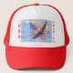 Esta é uma águia do vôo sobre uma bandeira americana sobre um mapa dos Estados Unidos que incluem as ilhas havaianas e o Alaska. Eu quis fazer um chapéu patriótico. Na parte superior diz, "os Estados Unidos da América, indivisíveis, com liberdade e justiça para tudo." É customizável, assim que os EUA e a América nos lados podem ser suprimidos ou substituído com o algo outro.