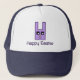 Um coelho roxo feliz para a páscoa. A cabeça do coelho é feita dos quadrados arredondados.