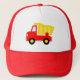 Chapéu vermelho bonito do camionista do camião basculante do brinquedo para miúdos. Ideia engraçada do presente para meninos. Ilustração de Dumptruck. Veículo da construção do contentor do vetor para crianças. Personalizable com nome. Ideia doce do presente para a festa de aniversário. Faça um para o filho, o neto, o neto, o irmão etc.