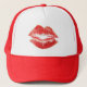 Caracterizando um grande grupo de lábios de beijo do vermelho no centro dianteiro do chapéu, é uma grande adição para o dia dos namorados! Um chapéu vermelho clássico do camionista para alguma partido ou ocasião. Obtenha seu aqui!