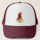Retrato vignetted relevante da galinha vermelha neste chapéu do camionista da galinha pequena do Brown do monte do solar "do presente" e da coleção do cartão. Ajustável, 100% parte dianteira da espuma do poliéster, malha do nylon de 100% para trás para mantê-lo para refrigerar e disponível em 11 combinações de cor.