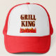 Churrasco engraçado do Grill King dizendo em uma fonte flamejante ocidental para cozinheiros e cozinheiros. Com arte gráfica de chamas vermelhas e laranja no fundo do design. Outro original da MomsRetro.