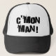 Chapéu preto e branco do camionista com o homem do grunge "C'mon!" texto para ajudá-lo a exprimir suas frustrações a seu próximo.