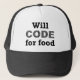 Will Code para chapéu de Comida. Quem não ama o humor do geek? Comprar este chapéu engraçado para si mesmo ou como presente para aquele programador especial de computador na sua vida!