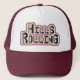 Peça as colinas da edição limitada que rolam o chapéu do camionista em Borgonha com o logotipo minúsculo dos círculos, projetado pelo cantor-compositor Trey McGriff. Verifique para fora a música em itunes.com/HillsRolling ou em www.HillsRolling.com que você pode ver Trey McGriff compartilhar de uma cena com a jóia no filme original "ANEL da vida DO FOGO", como o stagehand com a banda de Johnny Cash, arejando agora em LMN.