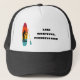 Adicione seu próprio texto para criar um chapéu de lembrança personalizado ou um presente personalizado. Este chapéu de caminhoneiro ou boné de beisebol apresenta uma ilustração de um SUP ou conselho de remo e remo reproduzidos em cores vibrantes do pôr do sol com uma ilustração da silhueta a preto de alguém a embarcar de remo. Além do gráfico, é um ponto para adicionar sua própria mensagem em letras negrito.