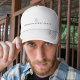 Stylish black script trucker hat customized with your company business name. Perfect for team wear, promotions, and everyday branding, this comfortable hat combines a classic trucker fit with elegant script lettering for a professional yet casual look.