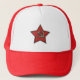 Um boné com um design soviético retro da propaganda que caracteriza um martelo e uma foice estilizados em uma estrela vermelha.