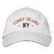 Pré-Disquete ILHA NY Vermelho e Preto bordado em chapéu de algodão branco. As cores do bordado são personalizáveis para outras opções de cores selecionando o botão da ferramenta "Editar Design". Também está disponível a opção de selecionar essa cor na página do item principal.