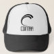 Chapéu preto e branco da malha e da espuma com preto contra o logotipo.