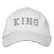 White Color Handsome Men's King Text Name Embroidered Baseball Boné, A base de um chapéu bordado é tipicamente feita de vários materiais, como algodão, poliéster, lã ou uma combinação desses materiais. A escolha do material pode afetar o conforto, a durabilidade e a adequação do chapéu para diferentes condições meteorológicas.
