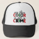 Acessório com tema de justiça social apresenta multicoloração "minha cor da pele não é um crime" texto sobre fundo branco