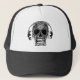 Um chapéu legal e à moda do camionista que caracteriza meus próprios trabalhos de arte tirados mão! Este é um desenho inspirado preto e branco de um crânio que veste fones de ouvido. Se você gostaria deste gráfico em um produto diferente por favor de me contactar e eu estaria feliz fazê-lo para você!