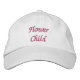 Boné de beisebol ajustável básico de roupa alternativa com bordado personalizado em branco com "Flower Child" em tipografia de texto rosa e design gráfico digital por TheFabricSeal na loja sob demanda da Zazzle.com #ZazzleMade https://www.zazzle.com/store/thefabricseal TheFabricSeal Original.